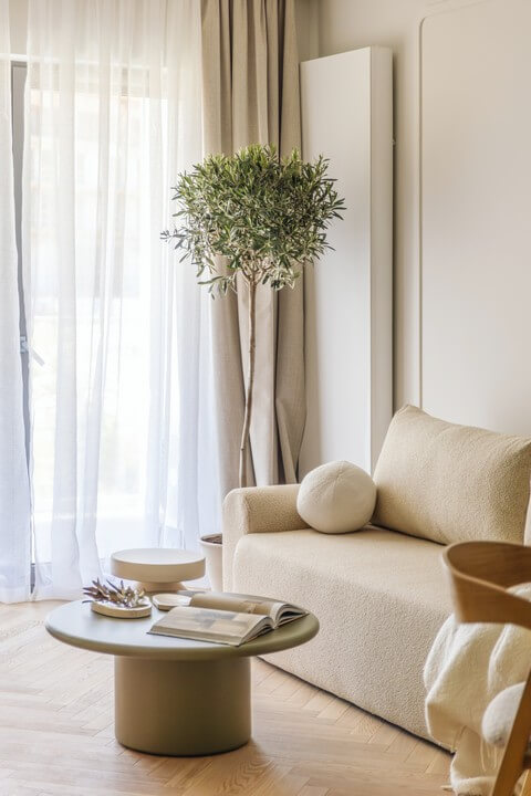 Harmonia pomieszczeń sprawia, że stają się one szalenie relaksujące. Psychologia barw mówi, że tego typu kompozycje w stonowanych, świetlistych beżach wpływają korzystnie na równowagę psychiczną, pozwalają odpocząć, zrelaksować się – zupełnie tak, jak ma to miejsce na wakacjach w basenie Morza Śródziemnego.