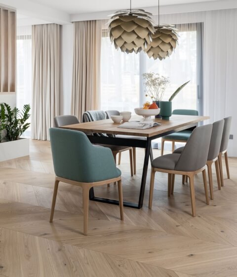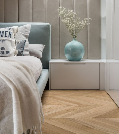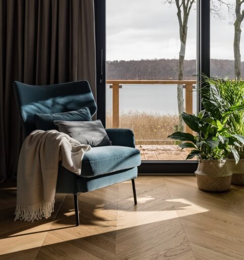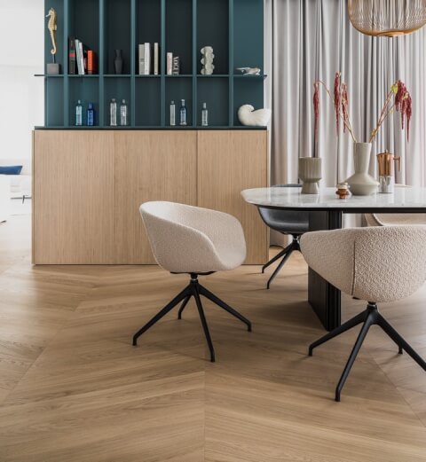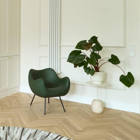 Learn moreFrench herringbone is a unique wood flooring type that dazzles with its timeless elegance and sophistication. Herringbone patterned floors were first used by Daniel Cronstrom, who in the late 17th century replaced marble floors in the Versailles palace with handmade wooden flooring with a unique pattern and opulent character. The fact that tiles cut at an angle of 45 degrees can trace their roots to a palace makes this variant the most luxurious version of proParkiet, while at the same time retaining its utmost versatility and suitability for use in interiors furnished in various styles. The lightness, slenderness and unique dynamics of the Chevron 45 pattern add a unique character to rooms and allows for the optical shaping of interiors and their proportions.