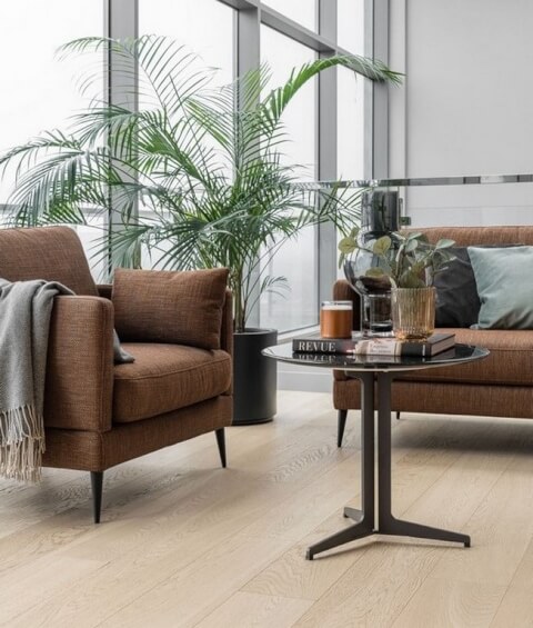 Semi-matte and super matte varnishes, applied in perfectly thin and perfectly even layers, flawlessly highlight the nature of the wood and guarantee an extremely elegant visual effect. Boards covered with super matte varnish resemble oiled floors but do not require any maintenance or renovation for many years. The Top of the World wood flooring collection comes in ten perfectly saturated, deep colours, inspired by the majestic beauty of the surrounding world and nature and select luxury products. The colour range of the Top of the World begins with raw wood tones, moves on to bleached wood and ends with dark and highly saturated colours. Champagne, Vanilla, White Pearl, Grey Pearl, Alaska, Grey Eagle, Sahara, Whisky, Coffee and Onyx - discover them all and choose which one fits best in your apartment, house or office.