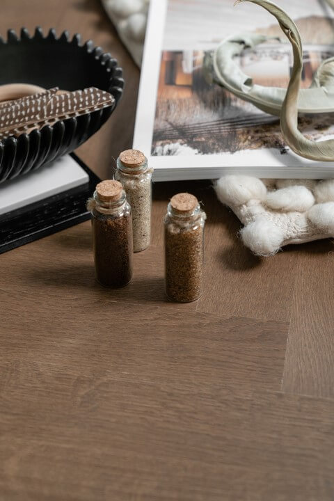 Floor finished with matte hybrid oil in brown, dark, warm, very natural.
