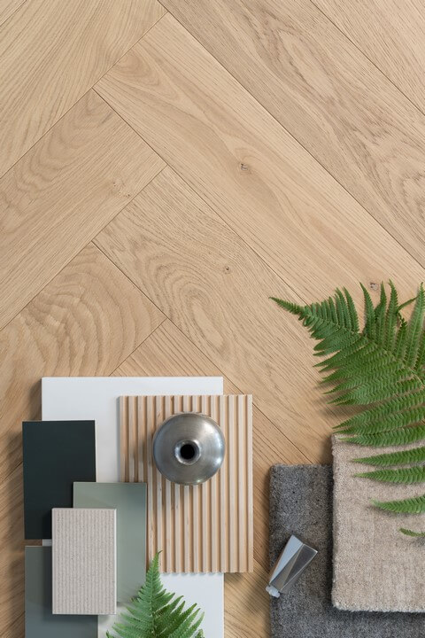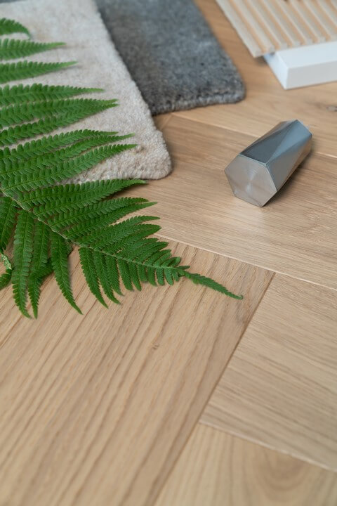 Podłoga dla miłośników naturalnych rozwiązań i wzorów zaczerpniętych prosto z przyrody. Zachwyca niepowtarzalnym wyglądem imitującym surowe drewno. Taki efekt otrzymaliśmy dzięki zastosowaniu podbielanej bejcy i zamianie jednego z lakierów powierzchniowych na lakier w odcieniu super mat. Podłoga ma przez to idealnie matowy charakter i przyjemną w dotyku strukturę. Wygląda identycznie jak olejowana podłoga dębowa, ale z wszystkimi praktycznymi zaletami podłogi lakierowanej.